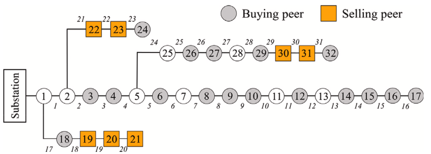 Figure 2. Test feeder with 7 sellers and 17 buyers.