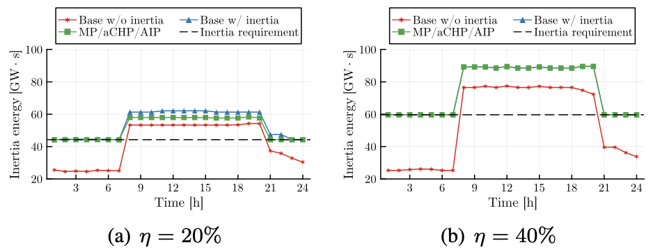 Figure 2. System inertia levels with and without inertia-aware scheduling.